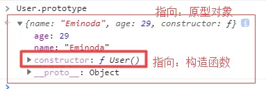 该 原型对象 内含 constructor 属性,并指回构造函数 User: