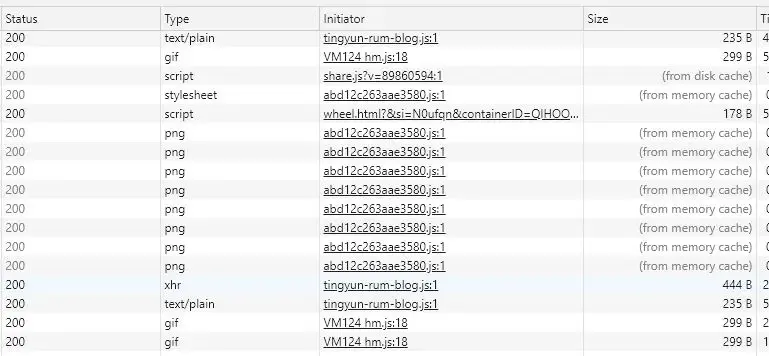 在谷歌浏览器按 F12 之后的 network 选项中可以看出:命中强缓存的请求,会得到200状态码,由于字段是从本地获取的,所以size 字段处会显示 from memory cache 或 from disk cache。