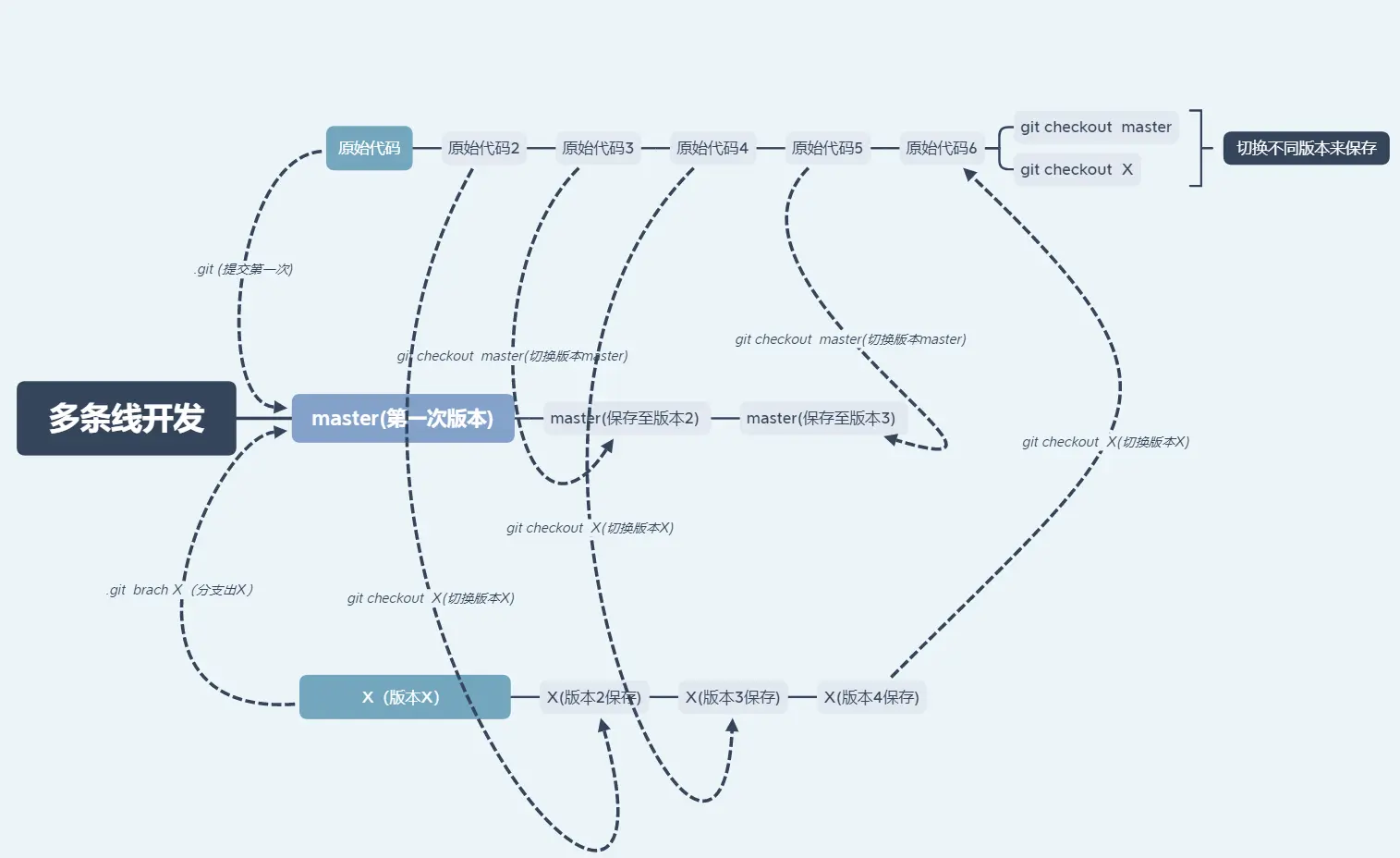 git checkout (master/X) - 通过切换分支