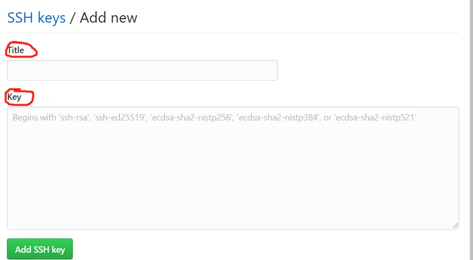 - 打开 GitHub 页面,输入公钥