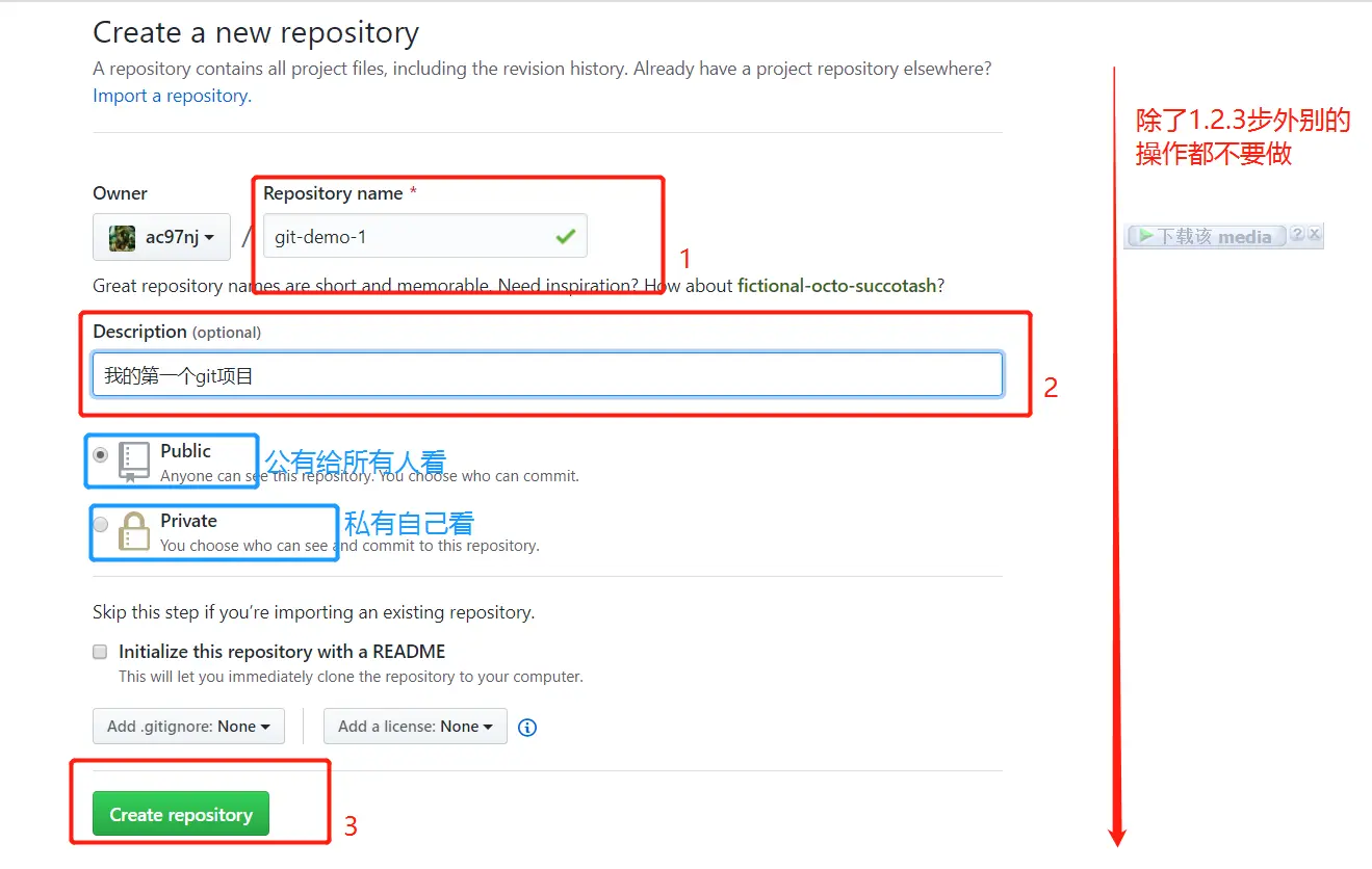 - 打开 GitHub,按图片步骤进行操作