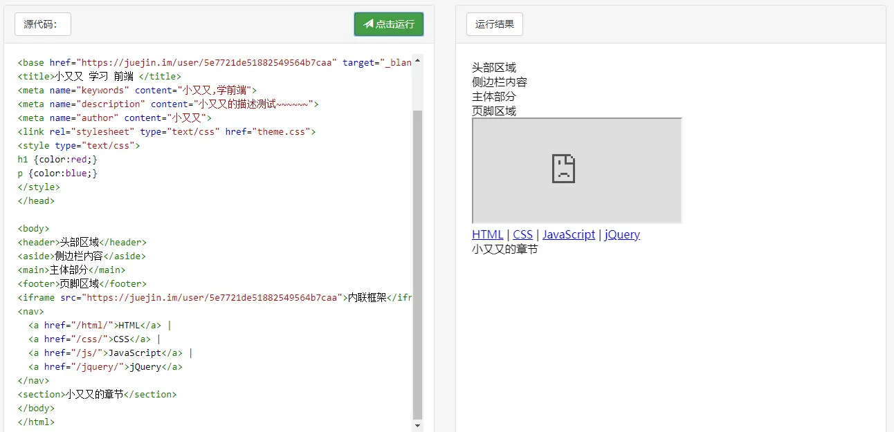 <iframe src="https://juejin.cn/user/2365804756345320">内联框架</iframe>