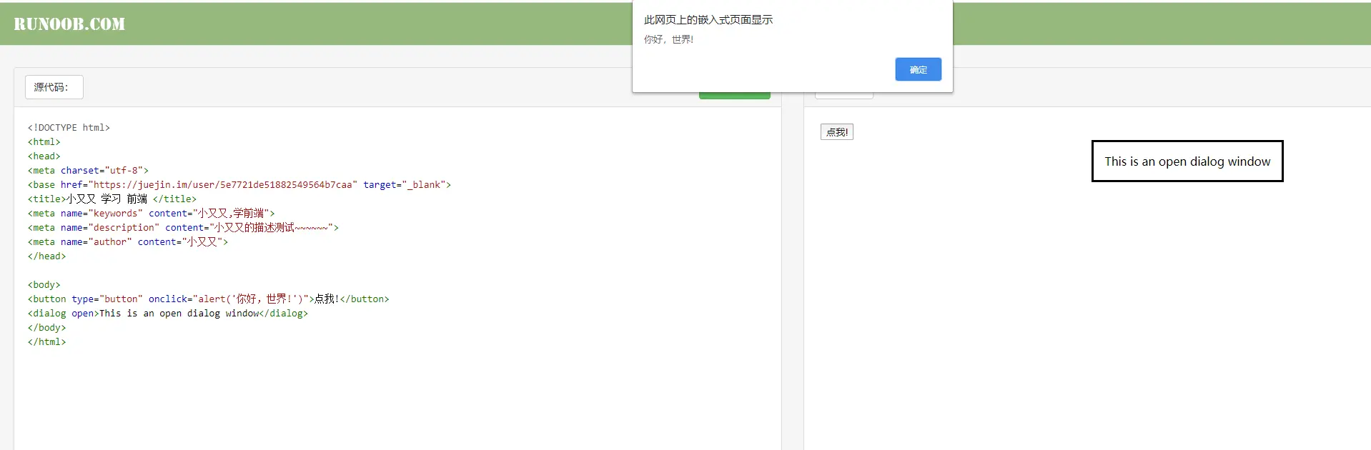 <dialog open>This is an open dialog window</dialog>