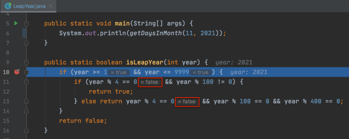 IntelliJ IDEA 2020.1 向调试器添加了数据流分析协助功能(Dataflow analysis assistance),此功能根据程序执行的当前状态预测并显示可能的异常以及始终为真/假的条件。