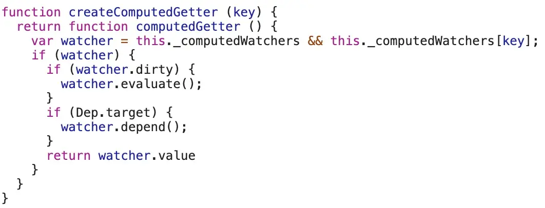 Object.defineProperty(target, key, sharedPropertyDefinition)加到sub.prototype上,其中sharedPropertyDefinition中会寻找_computedWatchers是否有这个key对应的value, 如果会判断dirty是否是true, 本质上computed是基于watcher的,在初始化vue对象的时候会进行初始化computed,并且创建watcher对象,不同的是会将watcher中的lazy设置为true,这会帮助我们判断页面其他属性改变的时候是否需要调用computed里的方法进行更新