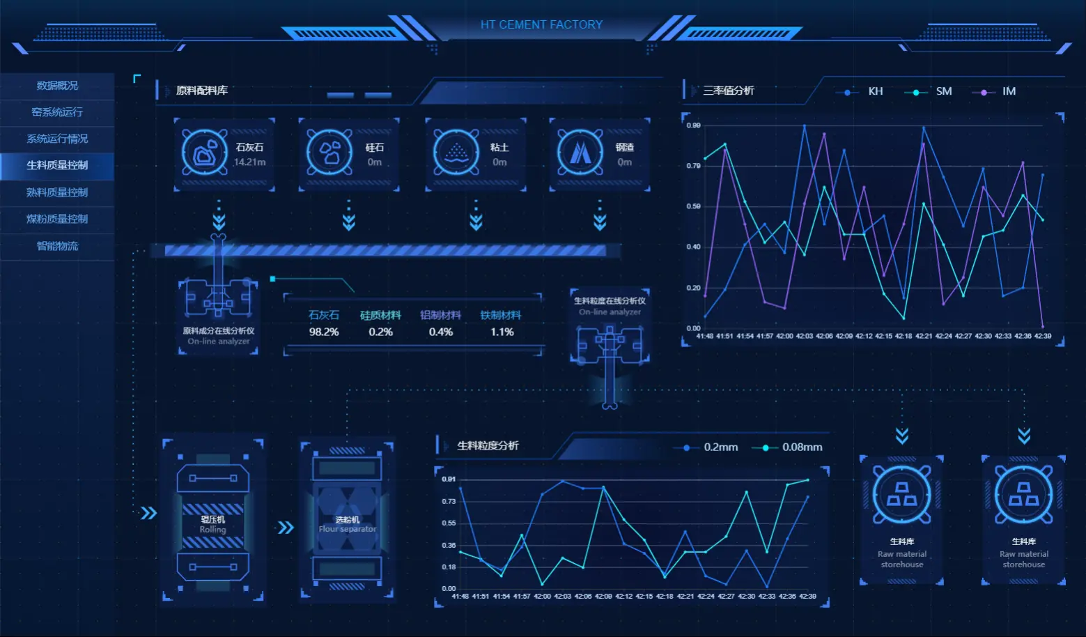 如今的制造行业,基于数据进行生产策略制定与管理已经成为一种趋势,特别是 工业4.0 的浪潮下,数据战略已经成为很多制造企业的优先战略,而数据可视化以更直观的方式,帮助指导决策,成为数据分析传递信息的重要工具。通过数据可视化系统助力实现数据驱动的工业世界,为 工业4.0 提供更加灵活、敏捷、高效、个性化的数据支撑。今天就给大家带来一个采用 Hightopo 的 HT for Web 产品实现了一个水泥工厂可视化系统。