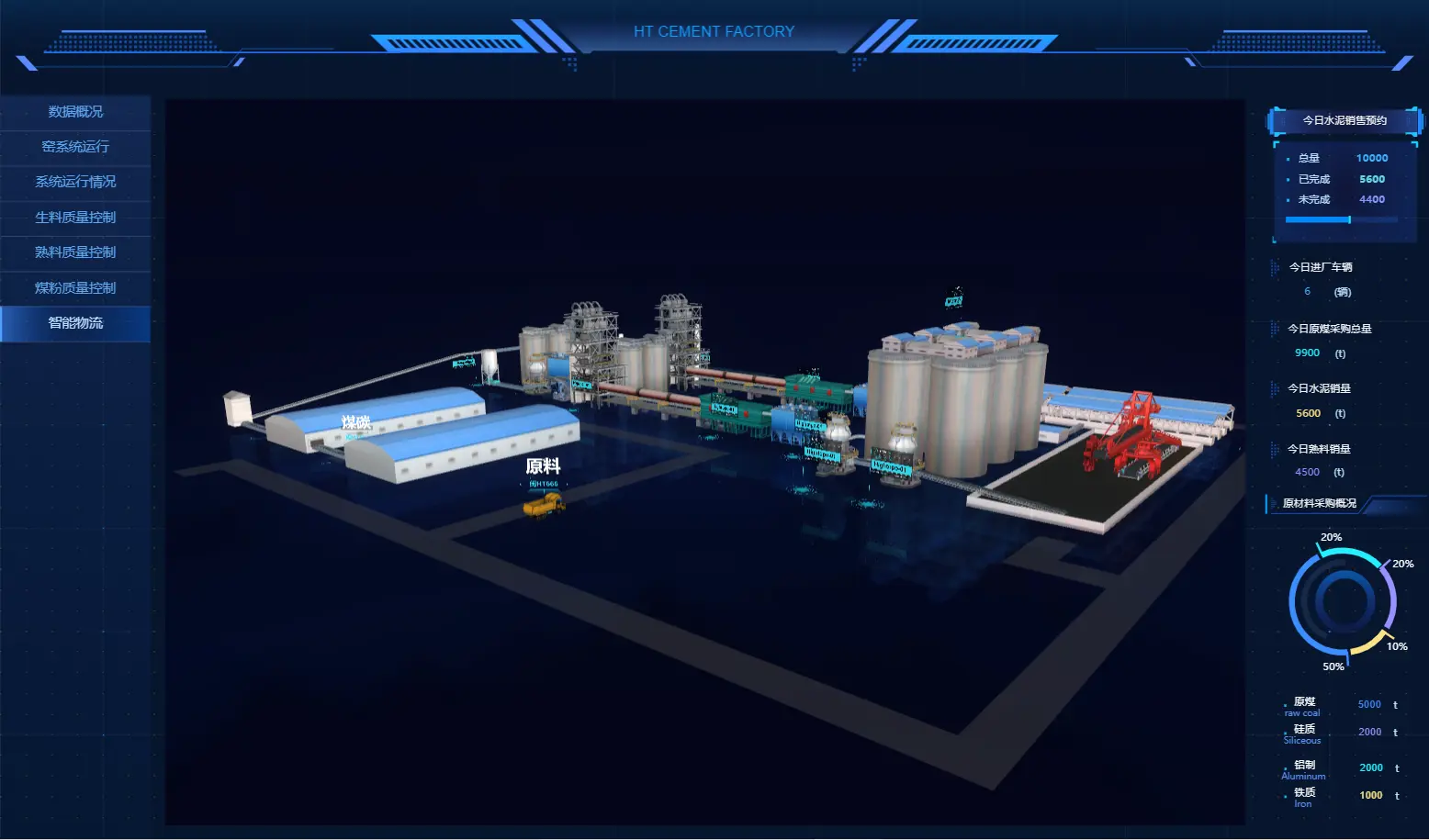 - 智能物流 -- 通过 3D 场景实时监控进出厂车辆,和各项原料运输情