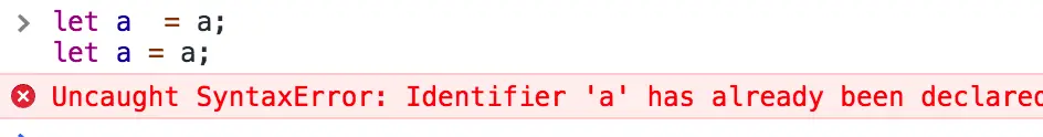 于是违反了 “同一个作用域,同一个变量只能被声明一次” 的规定,直接报错。实际上代码中赋值的 a 变量还没读取(在读取变量的时候才可能抛变量未定义的错误)。
