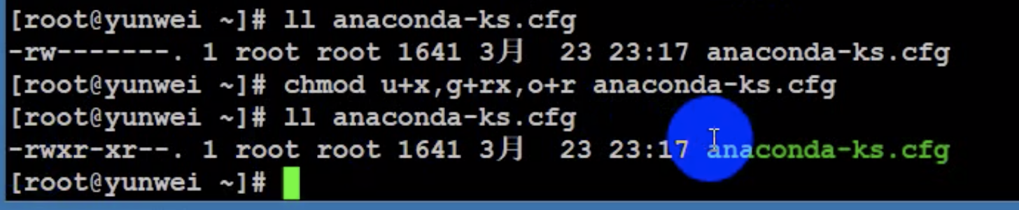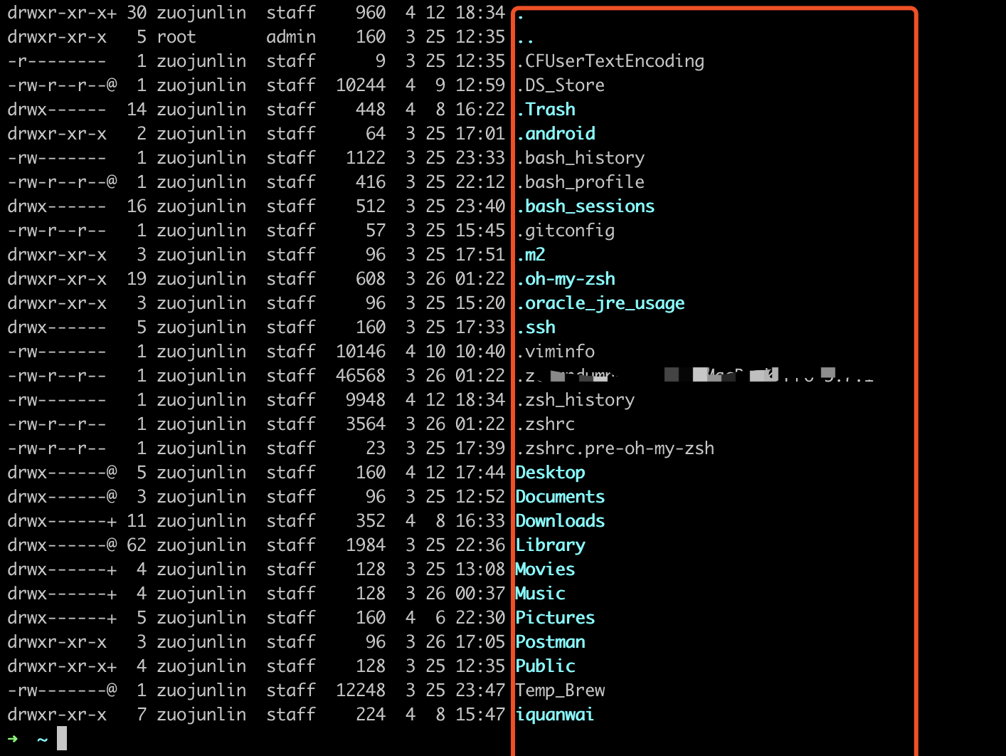 注意:ls 列出的结果颜色说明,蓝色的表示文件夹,白色的表示文件