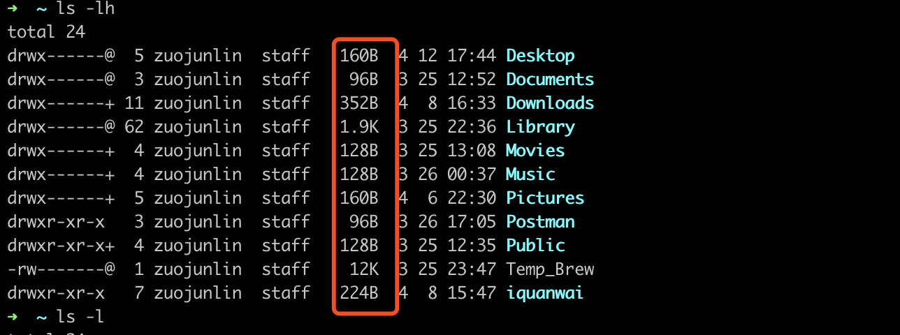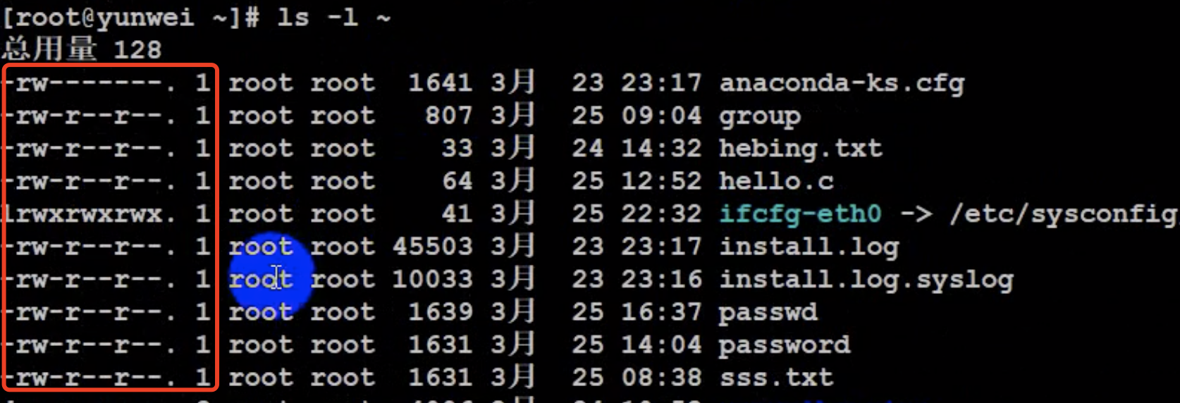 含义:列出指定路径下所有的文件/文件夹,以列表的形式并且在显示文档大小的时候以可读性 较高的形式显示