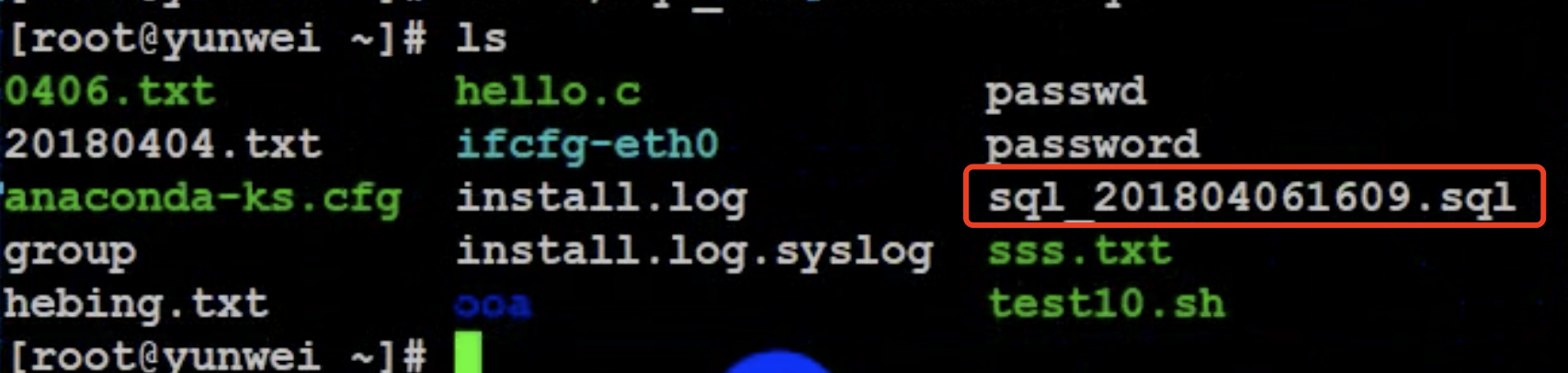 #mysqldump -uroot -pqhabOfhlluB9 ->A/root/sql_202007090117.sql