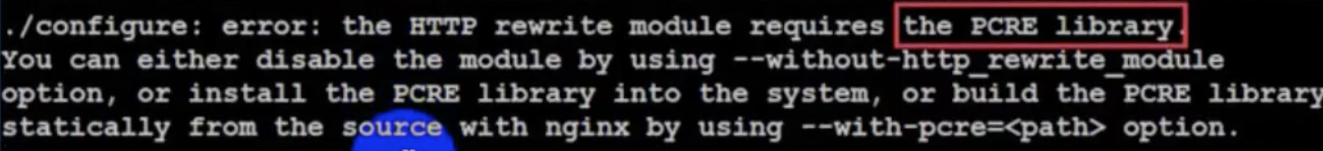 在配置的时候报错没有pcre库(nginx的rewrite伪静态匹配规则用到正则,pcre就用来干这个)
