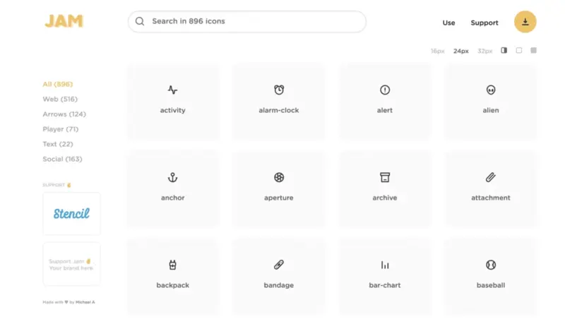 网址:jam-icons.com/ 格式和类型: SVG, CSS 价格和许可证:Free, MIT