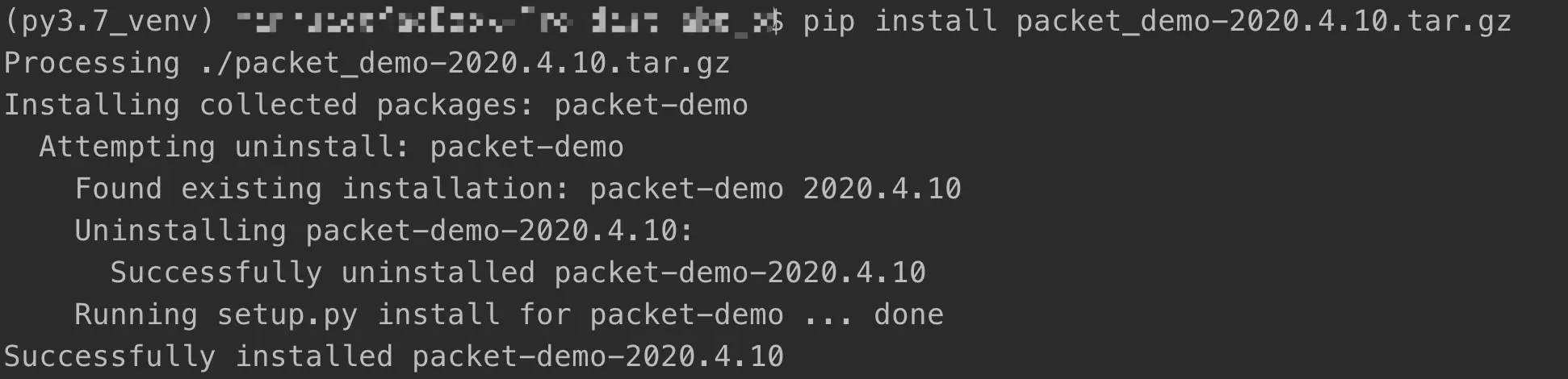 pip install xxx(自己包名,自由替换).tar.gz