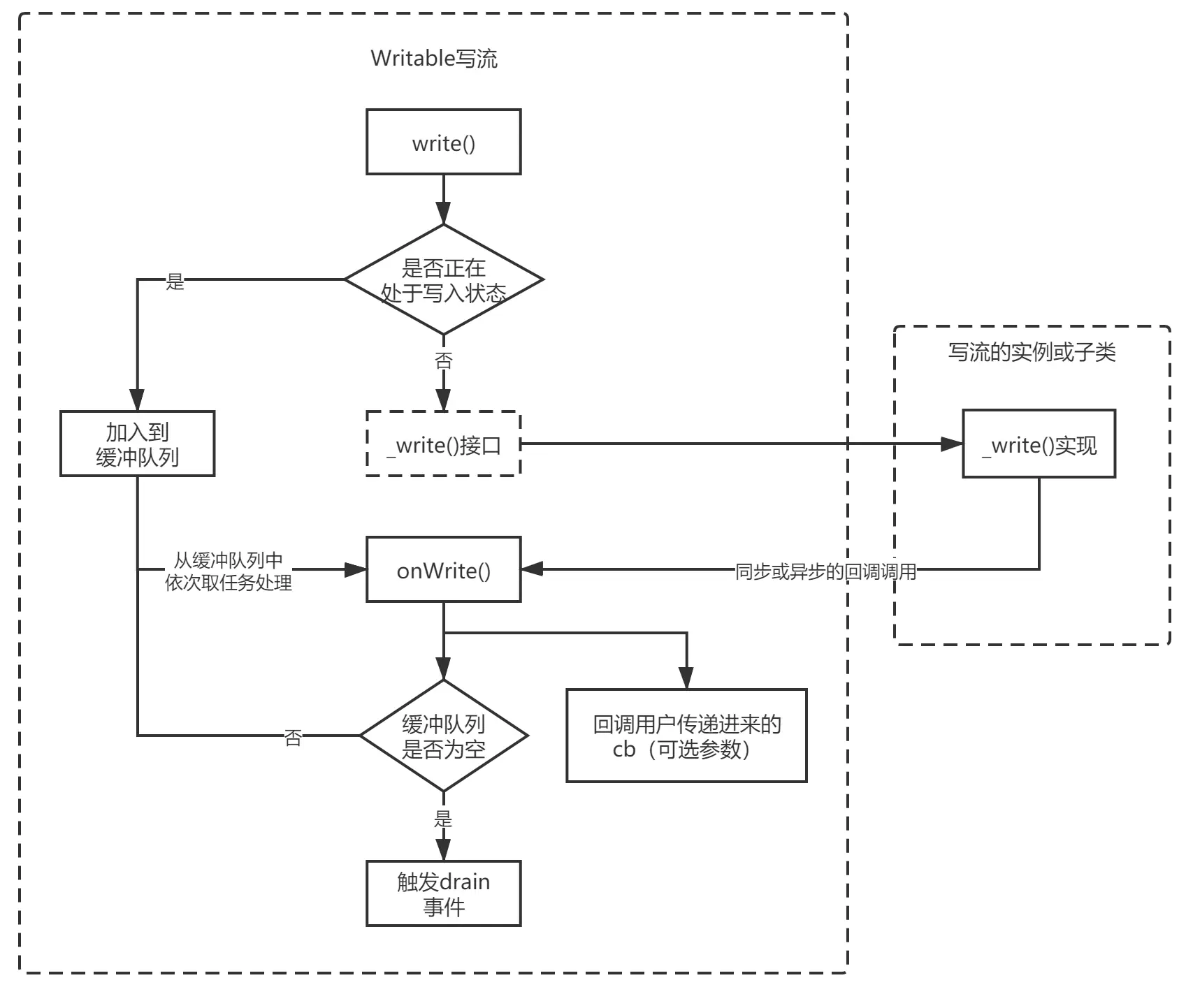 _write()和回调被调用之间如果有新的write()调用,则这些数据会先被放入缓冲区。调用回调时,流可能会发出“drain事件。