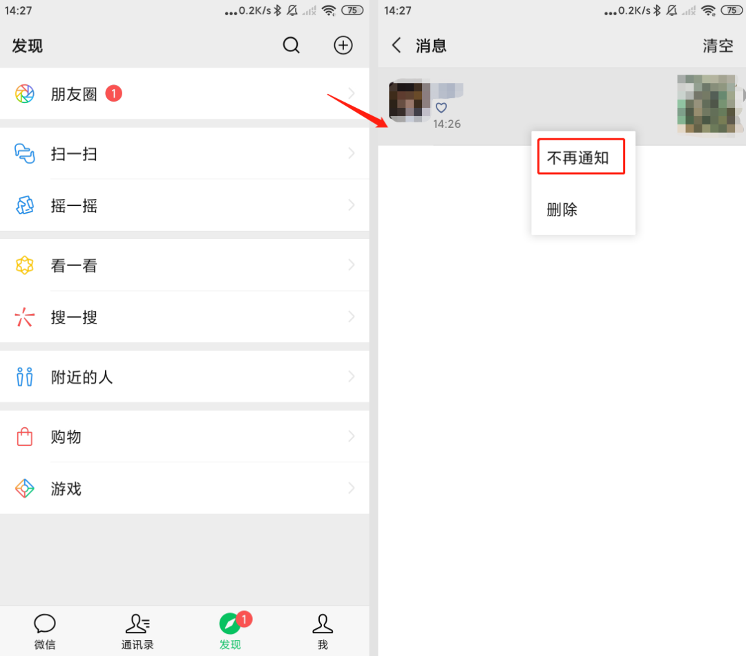 操作步骤:打开消息列表,苹果用户按住对应的消息往左滑,点“不再通知”。