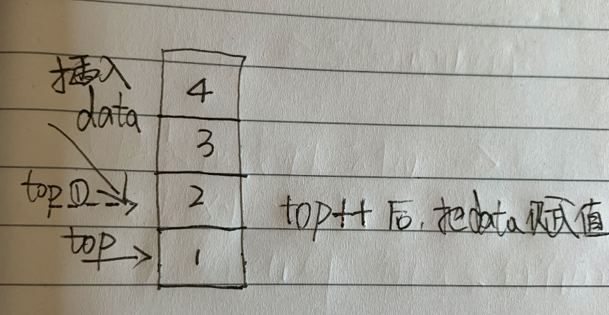// 从栈尾插入数据,栈顶指针top + 1