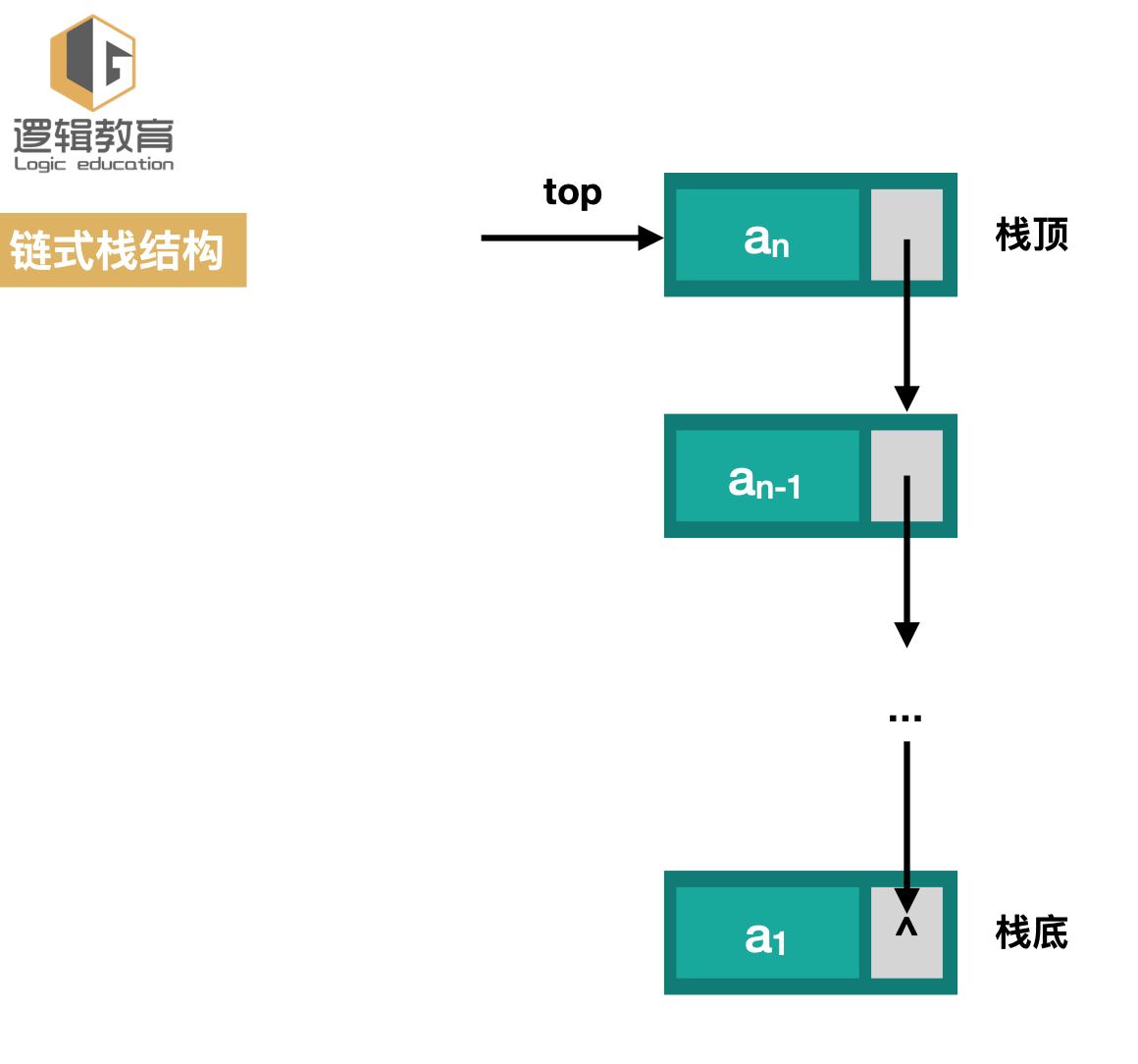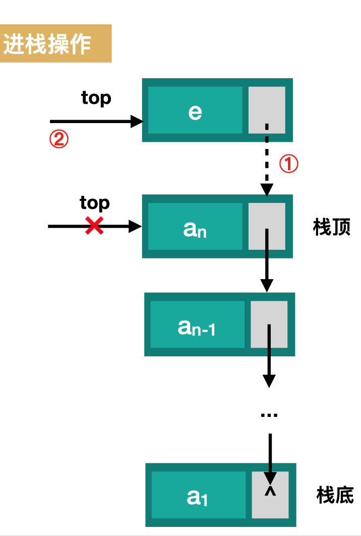 linkStackNode top; // 固定不动的,使用链式的next指向的指针