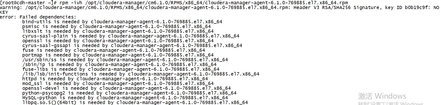 rpm -ivh /opt/cloudera-manager/cm6.1.0/RPMS/x86_64/cloudera-manager-agent-6.1.0-769885.el7.x86_64.rpm