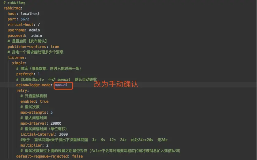 # 重试次数超过上面的设置之后是否丢弃(false不丢弃时需要写相应代码将该消息加入死信队列)