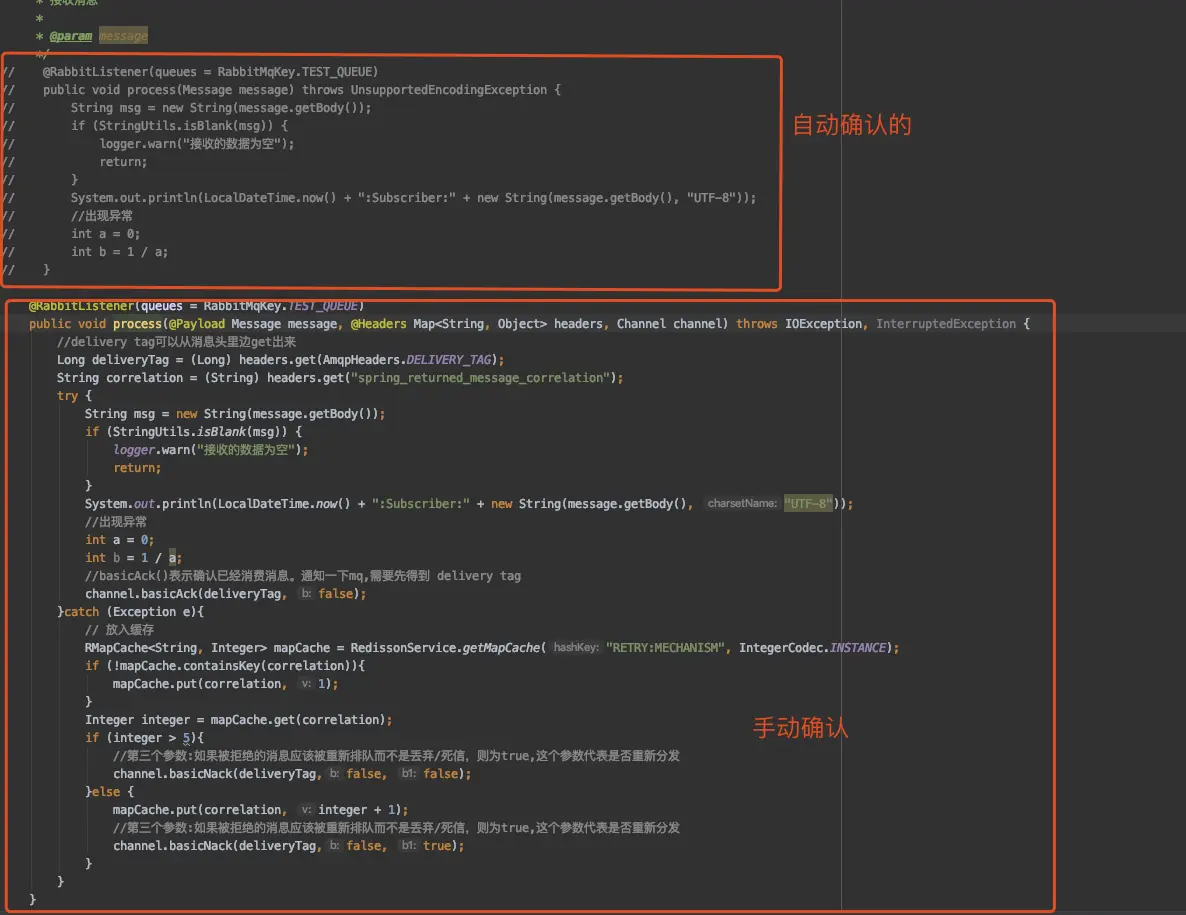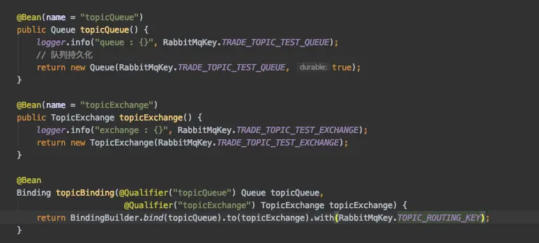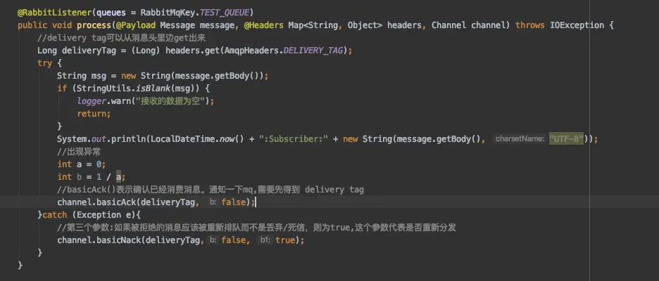 @RabbitListener(queues = RabbitMqKey.TEST_QUEUE)