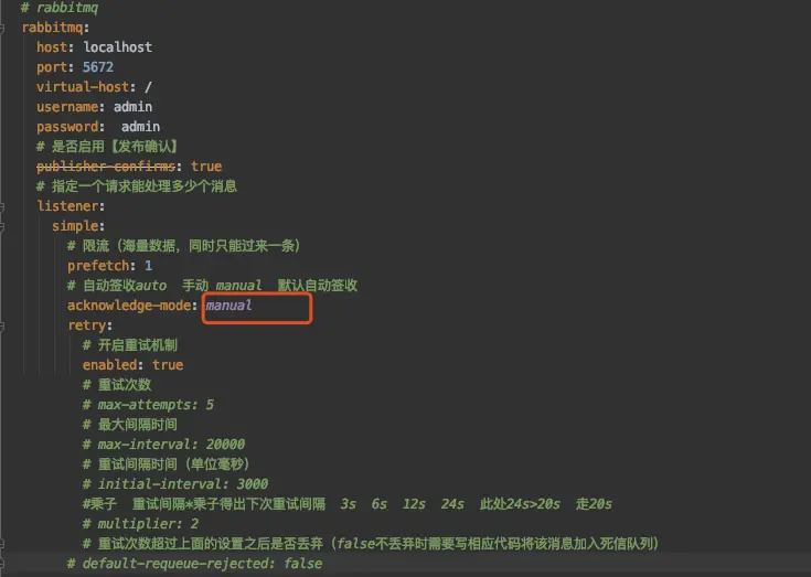 如果不是必须保证消息的投靠特别稳定、数据不能出现一点丢失。那么完全可以不用配自动重试的机制的,毕竟网络波动这种情况还是很少见的,业务逻辑执行有问题(比如空指针,数组越界等问题)你重试一百次也是报异常,这种就只能拉个程序员出来祭天就好了。