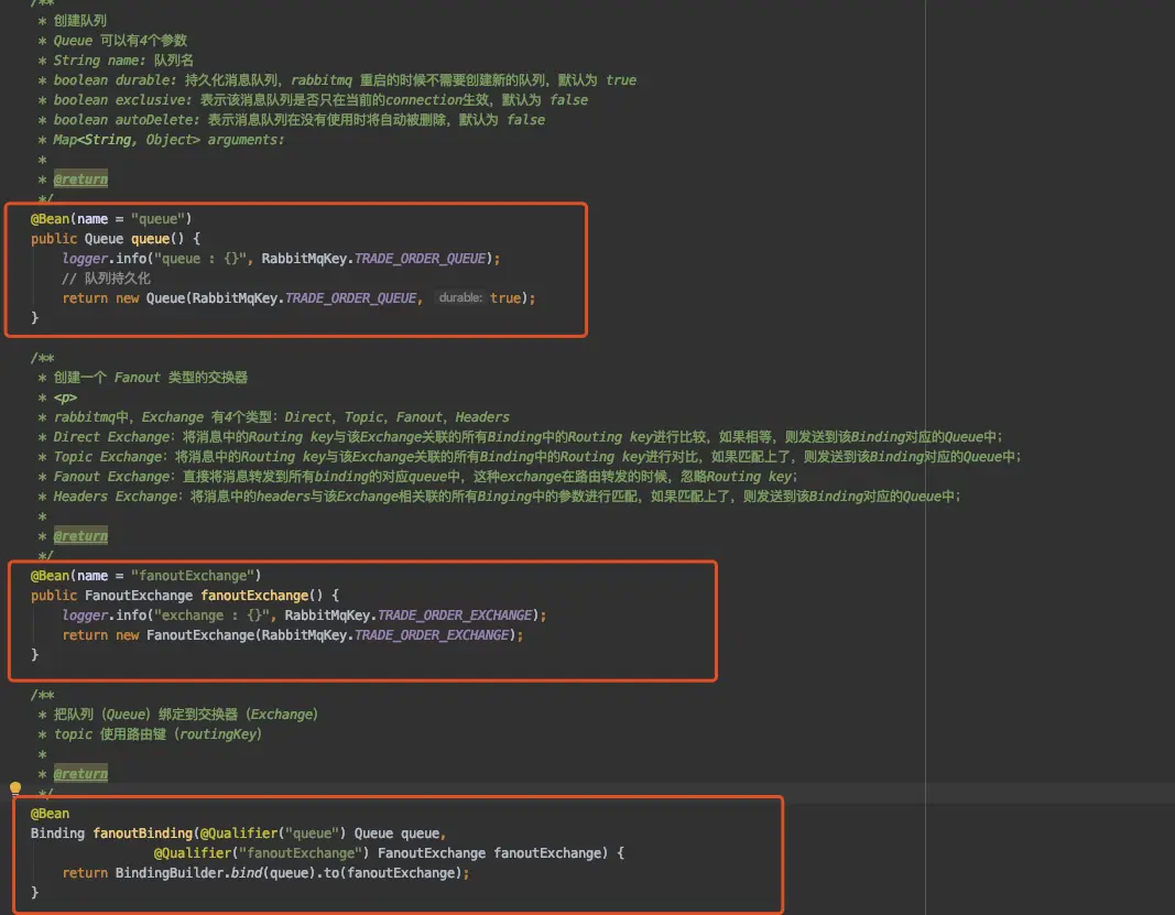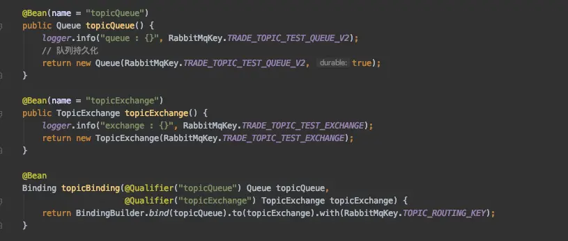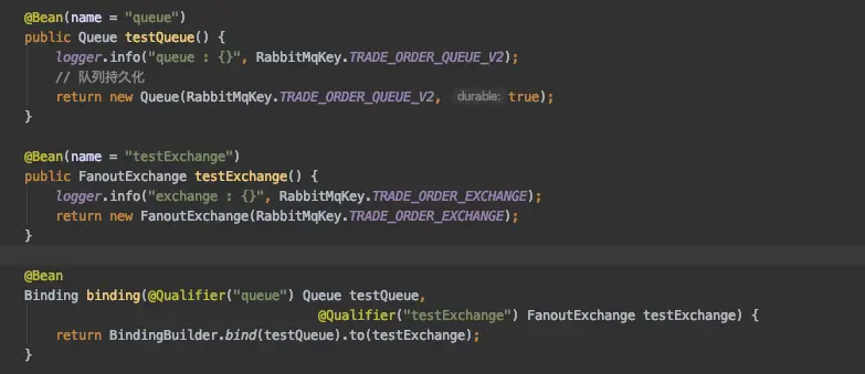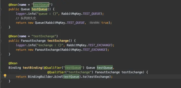 @Qualifier("testExchange") FanoutExchange testExchange) {