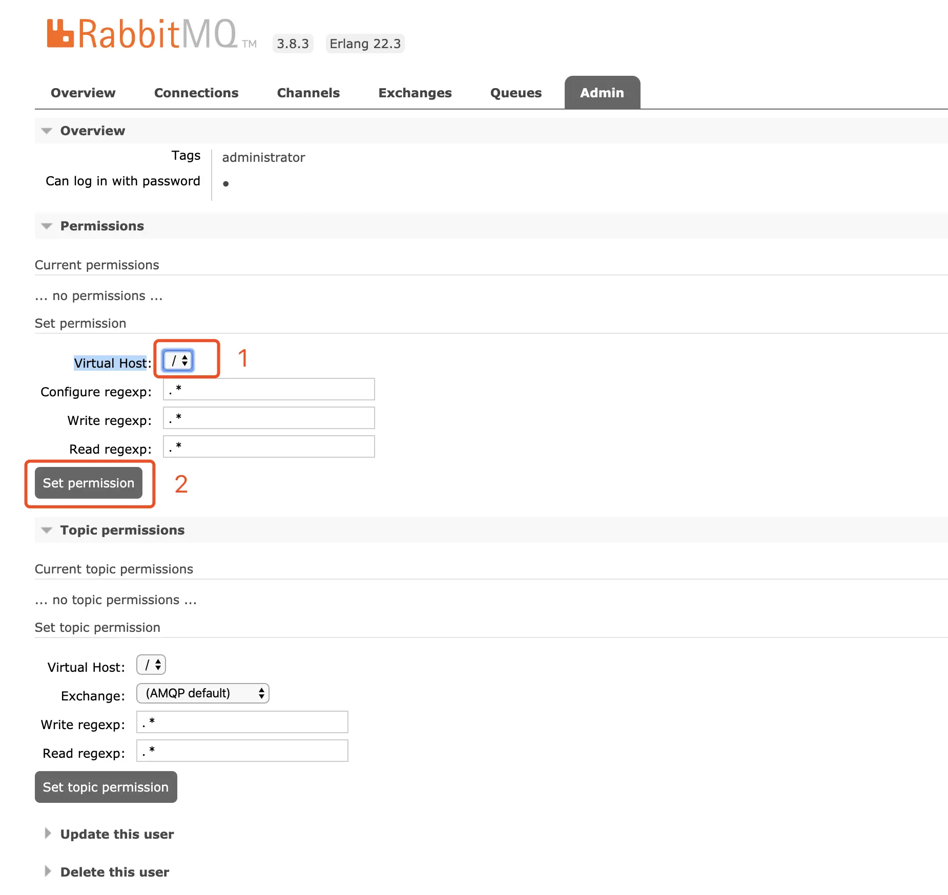 RabbitMq默认virtual host为 /, 如果想自定义virtual host,请点击这里。