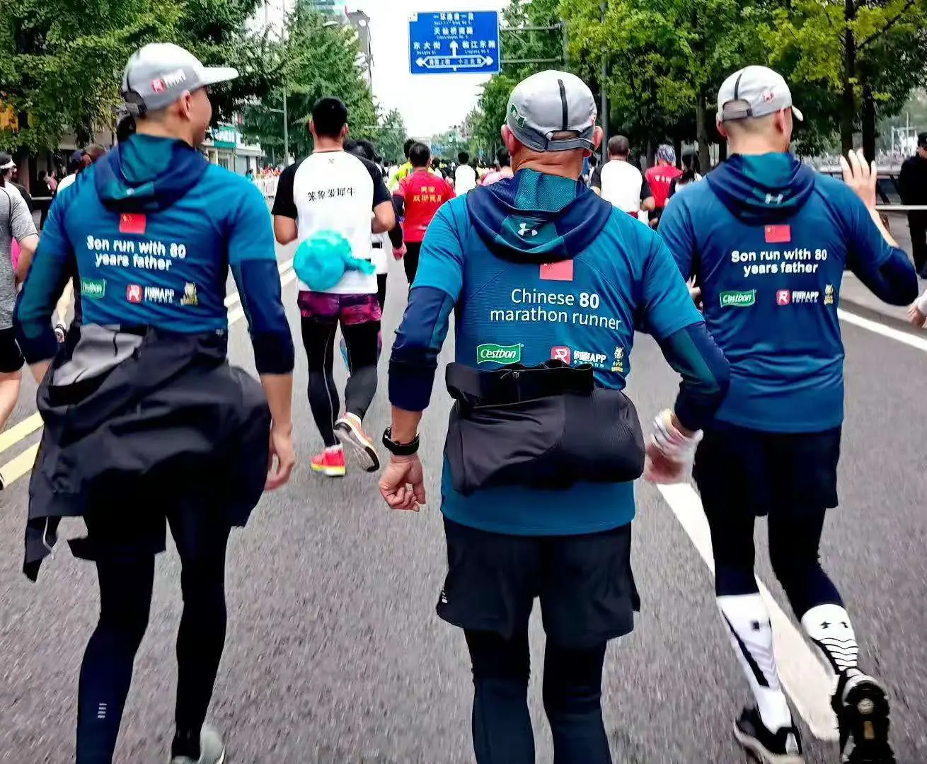 上面的图是我跑 2019 年成都马拉松的时候拍的,是一对双胞胎陪着 80 岁的父亲跑全程马拉松。