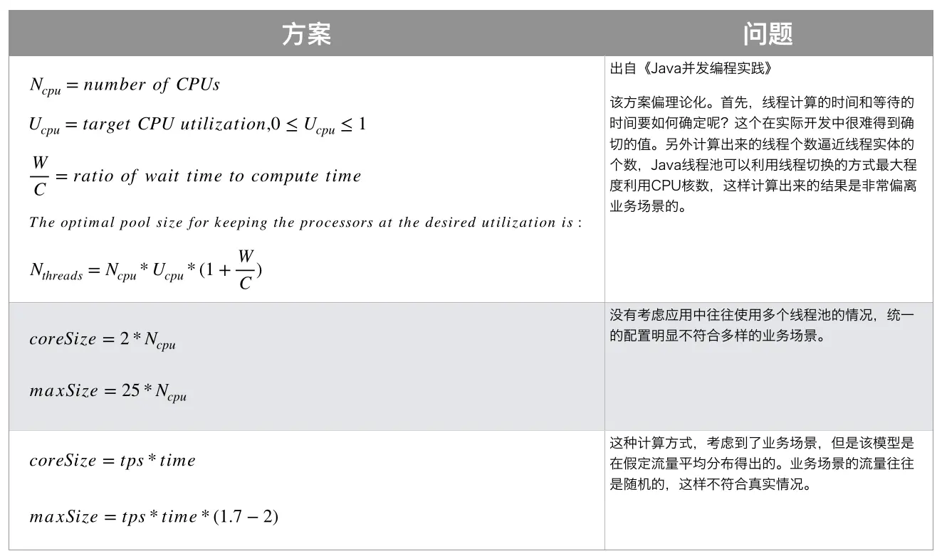 第二个设置为 2*CPU 核心数,有点像是把任务都当做 IO 密集型去处理了。而且一个项目里面一般来说不止一个自定义线程池吧?比如有专门处理数据上送的线程池,有专门处理查询请求的线程池,这样去做一个简单的线程隔离。但是如果都用这样的参数配置的话,显然是不合理的。