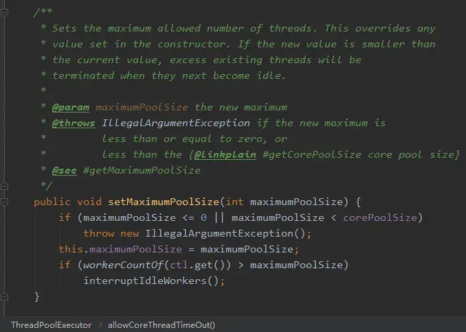 接着看 setMaximumPoolSize 源码: