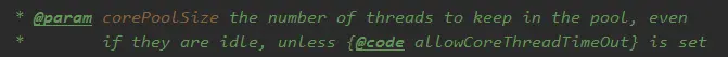 1.corePoolSize:the number of threads to keep in the pool, even if they are idle, unless {@code allowCoreThreadTimeOut} is set