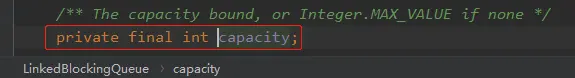 因为队列的 capacity 是被 final 修饰了呀。