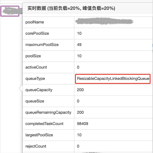 可是没有详细说明,但是别着急,接着看后面的内容可以发现他们有一个名字为 ResizableCapacityLinkedBlockIngQueue 的队列: