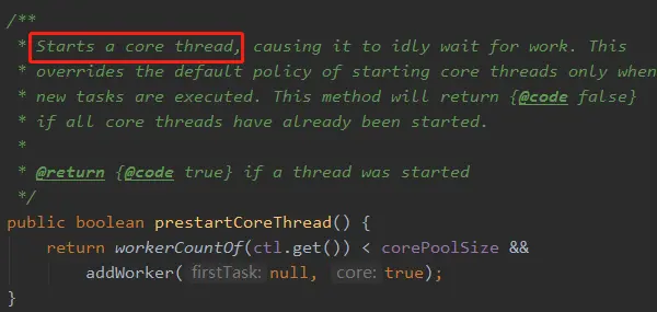 而且我调用了 prestartCoreThread 方法,该方法见名知意,你也知道是启动所有的核心线程数,所有不存在线程没有创建的问题。