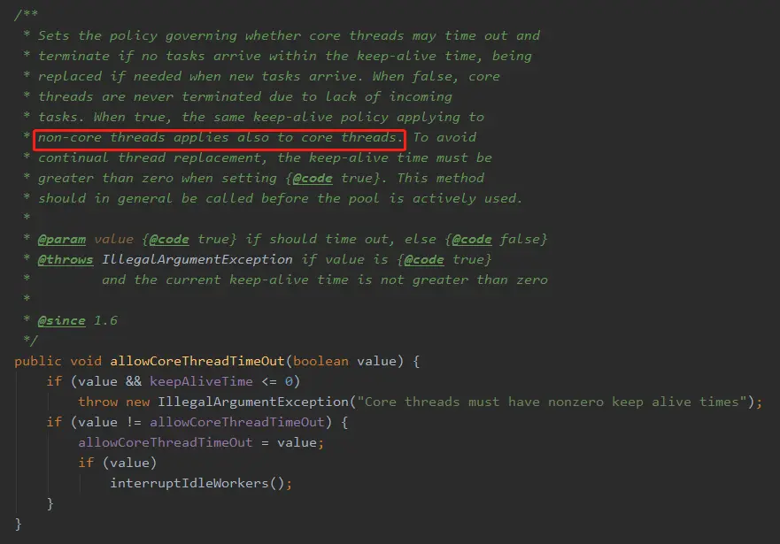 allowCoreThreadTimeOut 该值默认为 false。