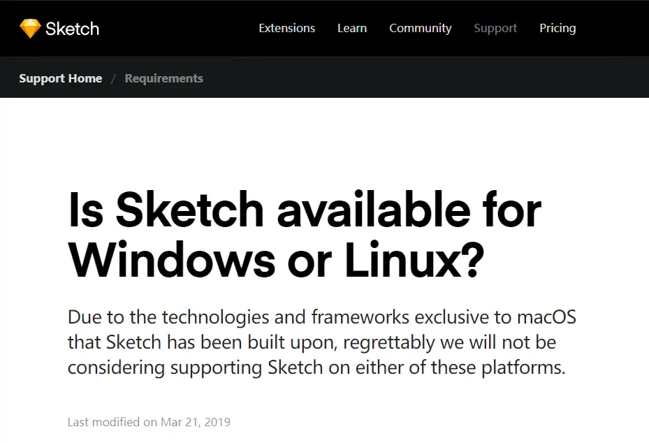 但是Sketch团队似乎比较傲娇,就是没有出除MacOS外其他系统的软件版本,官网给出的回答是: