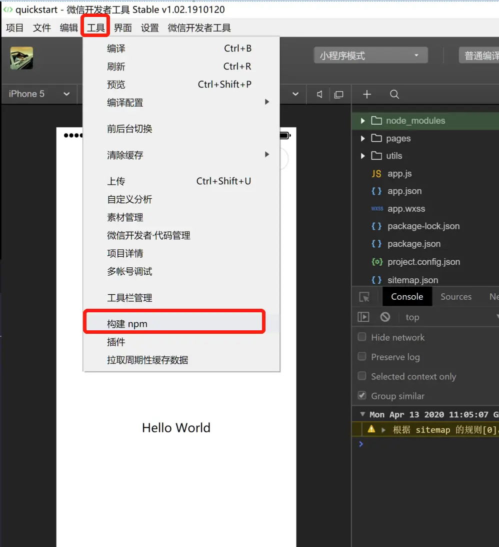 5、详情-》本地设置-》使用 npm 模块