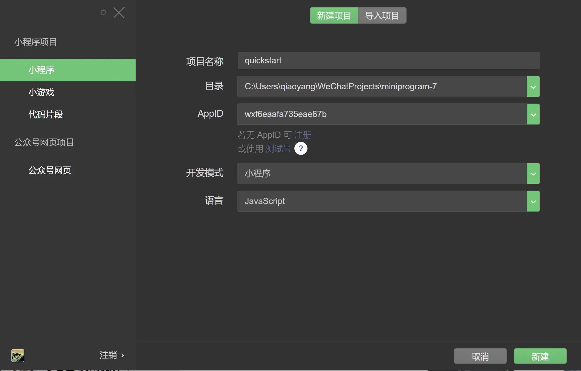 1、打开微信开发者工具,新建小程序项目