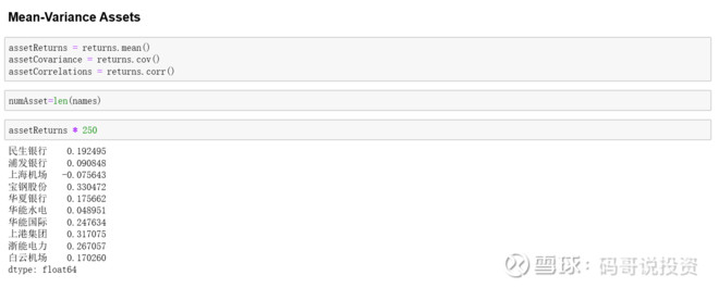 第三步:计算每个资产的期望收益率和协方差矩阵