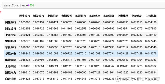 协方差矩阵(年化)