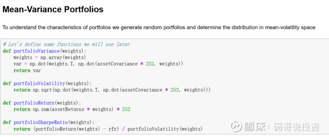 为了更方便进行计算,先定义组合波动率、组合收益率和组合夏普比率的公式