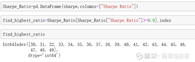 我们可以筛选出夏普比率大于0.9的的投资组合