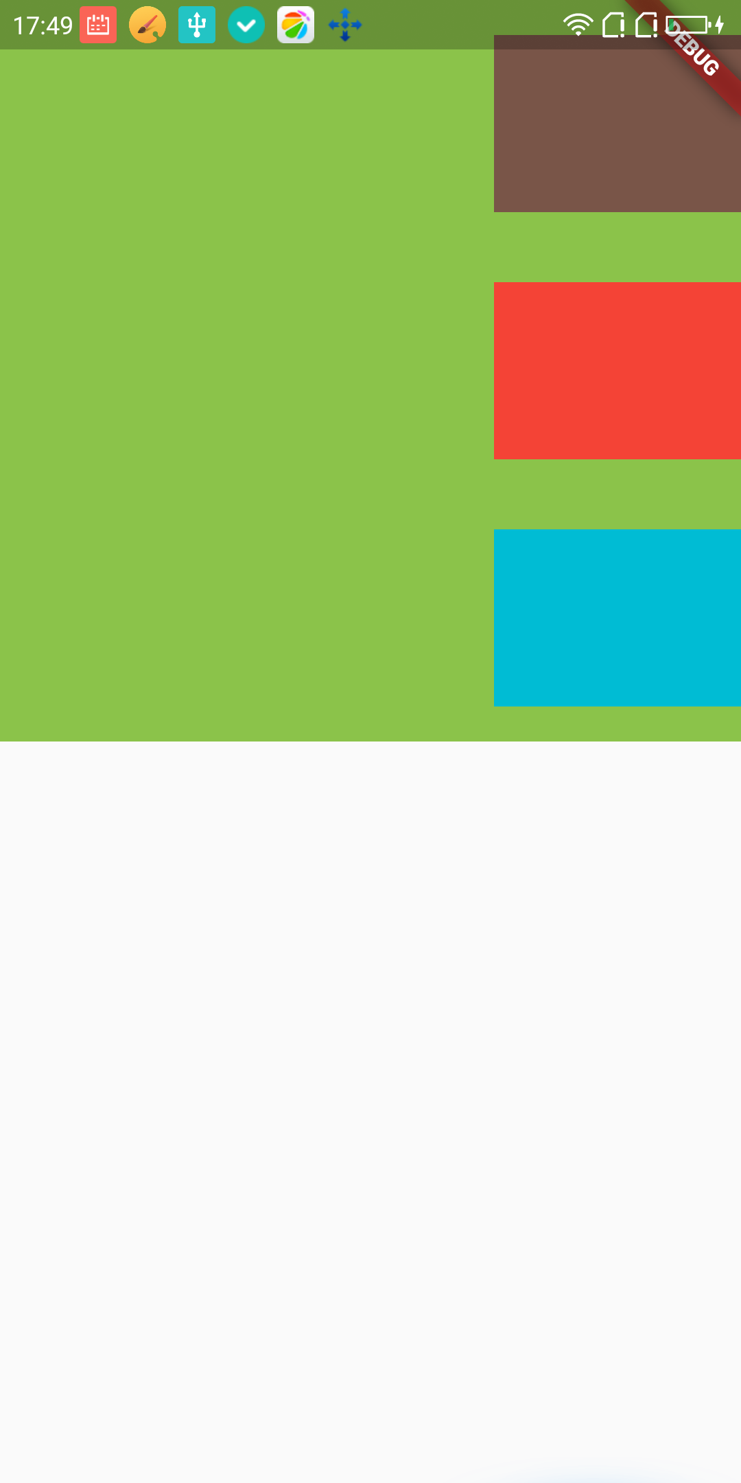 - MainAxisAlignment.start 表示所有子控件往首部的区域集中,剩余空间集中在尾部