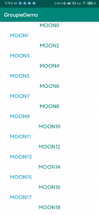 以往是创建ListAdapter等,但是在这里我们需要创建Groupie提供的GroupAdapter。然后通过GroupeAdapter.update方法对List<Section>数据进行更新。
