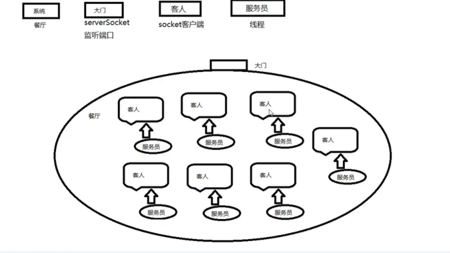 这个时候就可以同时处理多个线程,但是这种处理方式相当于我们自己的饭店给每一个客人安排一个服务员去服务,显然这样做会极大的提高我们的成本。在计算机中也是如此,我们很难用这种模式去处理高并发的网络请求。