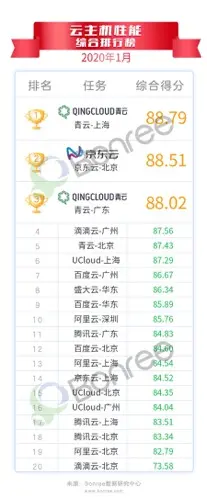 近日,国内应用性能管理服务商博睿宏远旗下性能测评栏目 Bonree 指数发布《 2020 年 1 月云主机性能测评报告》。