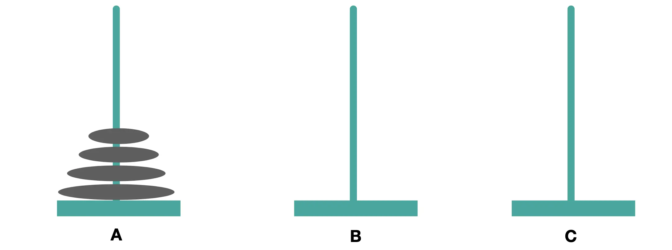Hanoi(4, 'A', 'B', 'C');