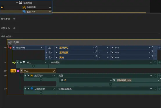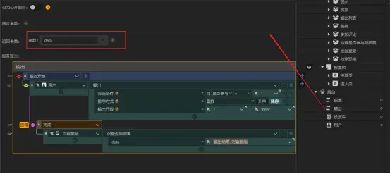 我们添加一个返回参数,将用户组件内的全部用户数据输出,然后把对象数组格式的输出结果赋值给返回参数即可。