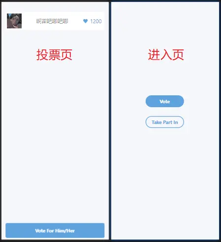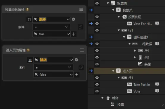 Demo包含进入也和投票页,分别放在两个if容器中,用一个布尔值变量“跳转”来判断当前显示哪一个。